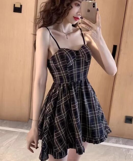 レディース ワンピース ミニ ショート 膝上 袖なし ノースリーブ フレア タイト スリム 細身 Aライン かわいい 大人可愛い おしゃれ かっこいい こなれ感 ラフ ガーリー モード系 とろみ感 抜け感 ラブリー キュート 爽やか セクシー ポップ ファンシー スタイリッシュ チェック 夏 デート お出かけ 韓国 オルチャン コーデ 楽ちん S M L XL 黒 ブラック