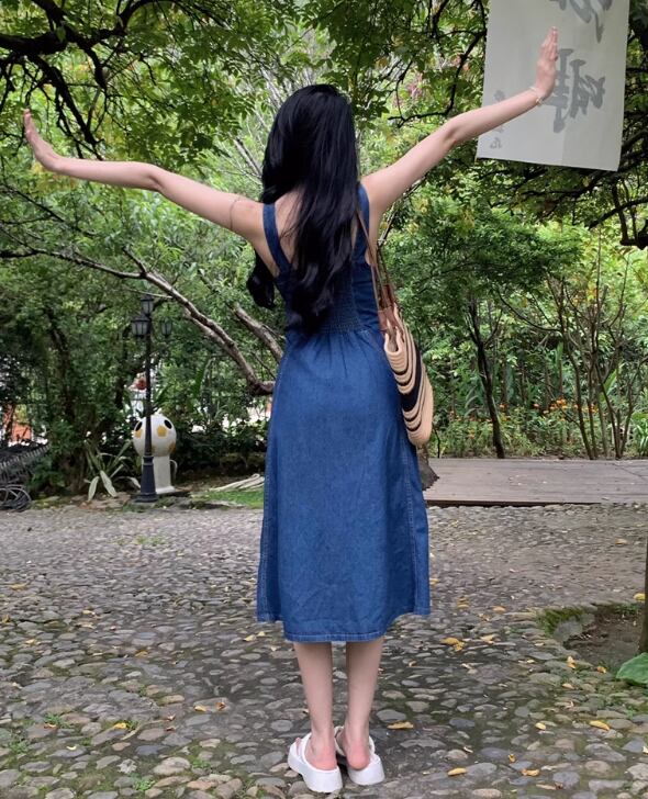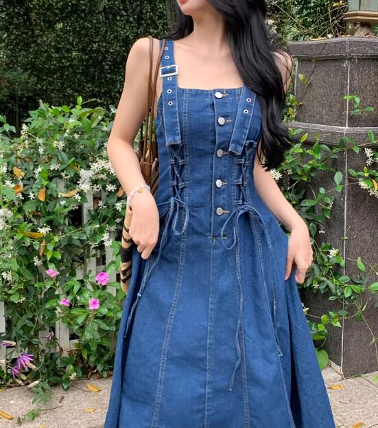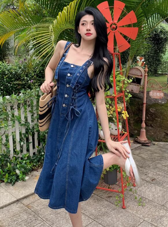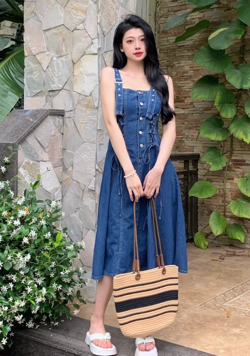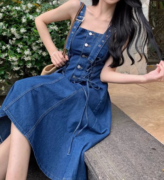 きれいめからカジュアルまで、幅広いスタイリングに対応するデニムジャンパースカート。シンプルで使いやすいデザインながらも、ボタンディテールやストレートシルエットがおしゃれ感を演出します。袖なしで着心地も快適で、夏のデートや女子会、休日の公園散歩など、様々なシーンで活躍するアイテムです。