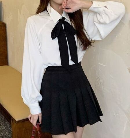 リボンタイ付きシンプルブラウス。