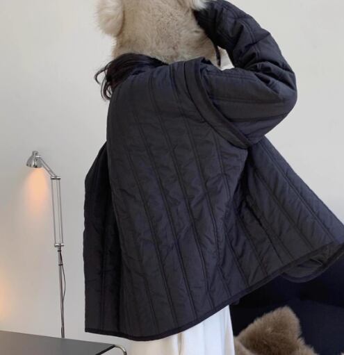 レディース ジャケット アウター 上着 ミドル丈 長袖 ファスナー 厚手 綿 シンプル カジュアル おしゃれ かっこいい メンズライク ボーイッシュ ルーズ 個性的 クール シック 高級感 スタイリッシュ 無地 冬 お出かけ アウトドア キャンプ 暖かい 防寒 普段使い 着回し トレンド 流行 S M ゆったり ゆる 大きめ オーバーサイズ ブラック グレー