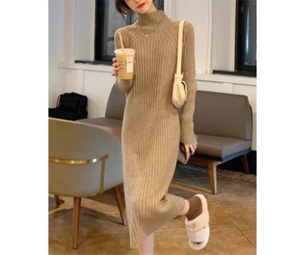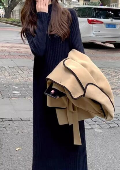 シックなカラーが大人可愛い、ロング丈のニットワンピース。
