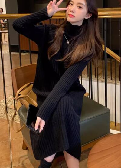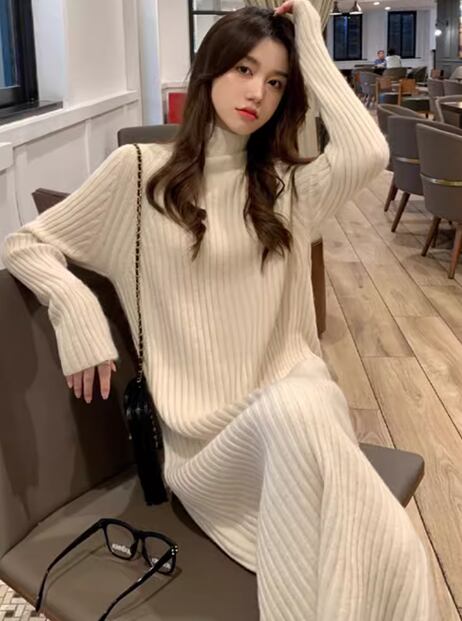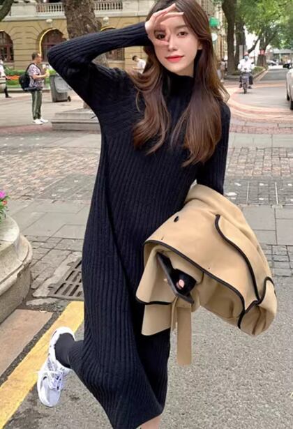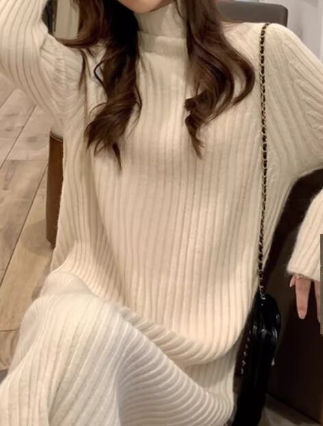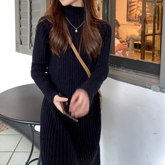 レディース ワンピース プルオーバー ニットワンピ ミモレ ロング 長袖 ハイネック ハイウエスト ストレッチ 伸縮性 かわいい 大人可愛い きれいめ シンプル カジュアル 上品 レトロ ラフ ルーズ ナチュラル シック 優しい 穏やか 柔らかい 無地 秋 冬 デート お出かけ 楽ちん 体型カバー 普段使い S M L XL ゆったり ブラック ブラウン オフホワイト
