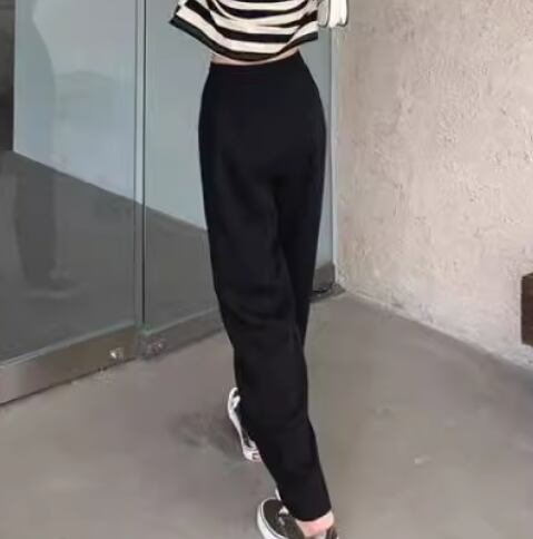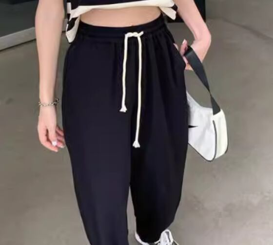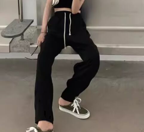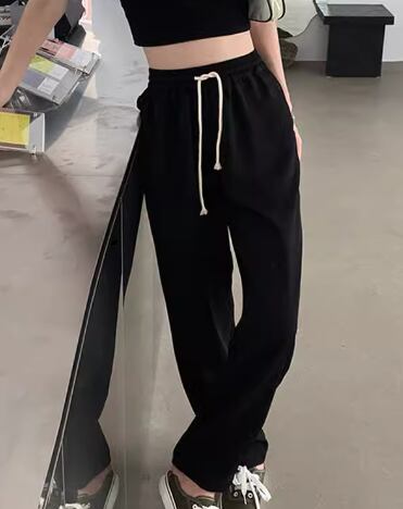 レディース パンツ ボトムス スウェット フルレングス ワイド ストレート ストリート ポケット ハイウエスト ウエストゴム ストレッチ 伸縮性 シンプル カジュアル かっこいい ラフ メンズライク ボーイッシュ スポーティー ルーズ クール リラックス ハンサム シック 高級感 スタイリッシュ 無地 春 韓国 楽ちん 普段使い 着回し トレンド 流行 M L XL ゆったり ゆる ブラック