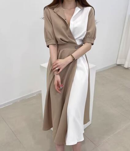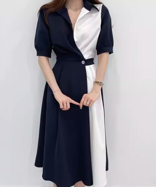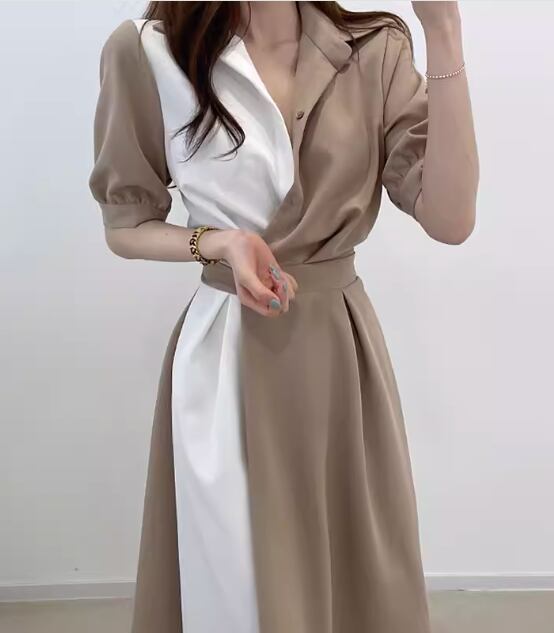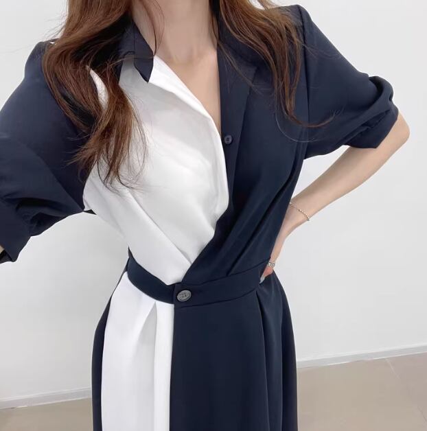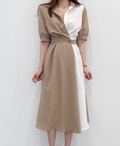 レディース ワンピース ドレス ミモレ 半袖 襟付き ポロカラー スリム 細身 ベルト ウエストマーク ハイウエスト ボタン 大人可愛い きれいめ シンプル カジュアル 上品 おしゃれ 個性的 エレガント 存在感 ラグジュアリー セクシー シック 高級感 スタイリッシュ 無地 夏 デート お出かけ 韓国 普段使い 清楚 S M L ブラウン ネイビー