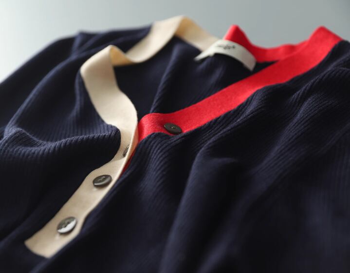 シックなカラーの配色がおしゃれな半袖のニットソー。