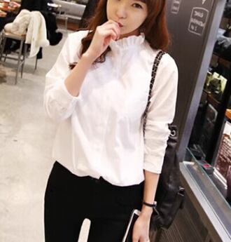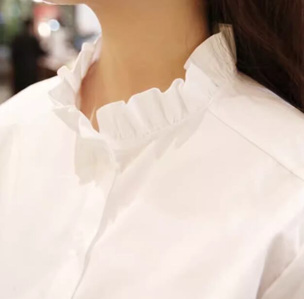 レディース トップス シャツ ミドル丈 長袖 スタンドカラー ストレート フリル 前開き ボタン かわいい 大人可愛い きれいめ シンプル カジュアル 上品 おしゃれ レトロ こなれ感 ガーリー エレガント キュート クラシカル 清潔感 シック 高級感 オフィスカジュアル 華やか スタイリッシュ 無地 秋 オフィス ビジネス OL 通勤 デート お出かけ 普段使い 着回し 清楚 S M L XL ホワイト
