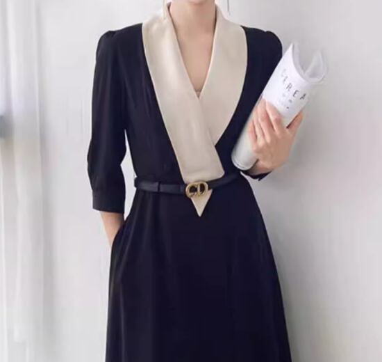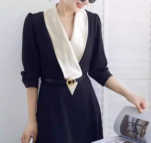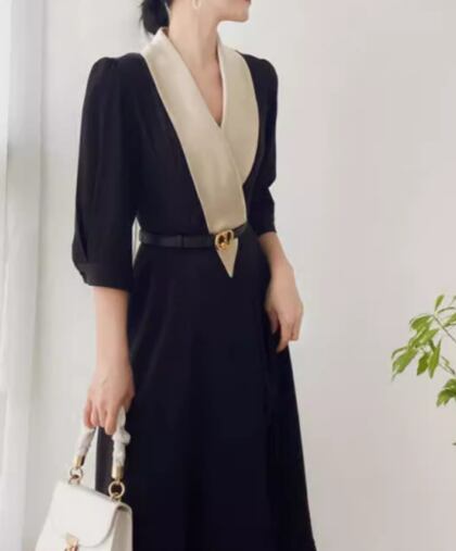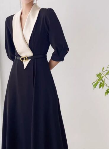 レディース ワンピース ドレス シャツワンピ 膝下 ミモレ 7分袖 Vネック Aライン ベルト ウエストマーク ポケット 大人可愛い きれいめ シンプル カジュアル 上品 おしゃれ かっこいい こなれ感 個性的 クール モード系 エレガント ラグジュアリー ハンサム シック 高級感 スタイリッシュ 無地 秋 OL デート お出かけ パーティー イベント 普段使い S M L XL ブラック