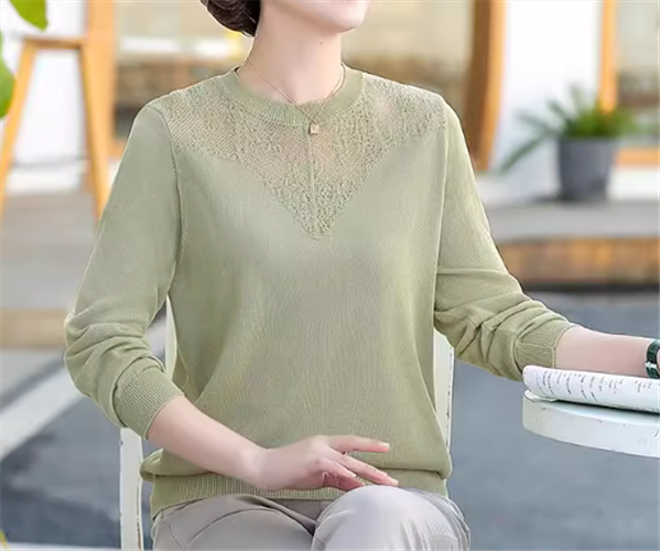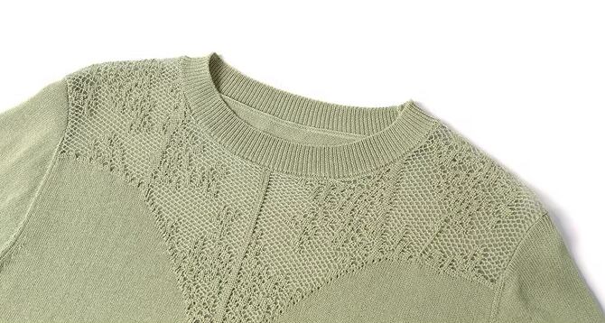 優しげで上品な色味とエレガントな雰囲気のデザインが魅力的な、薄手のニットセーター。