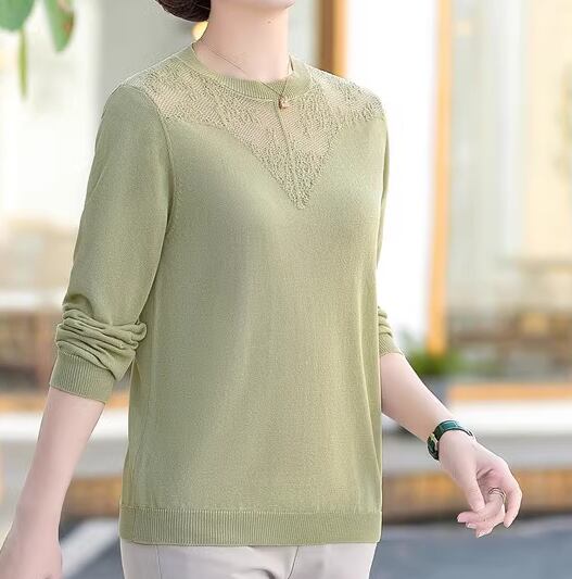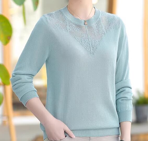 レディース トップス ニット セーター プルオーバー ミドル丈 長袖 ラウンドネック 薄手 大人可愛い きれいめ カジュアル 上品 おしゃれ レトロ エレガント シック 高級感 優しい 穏やか 柔らかい 春 秋 ママ 40代 50代 60代 ミセス お出かけ 普段使い 着回し M L XL ブルー ライトブルー グリーン 大人デザイン