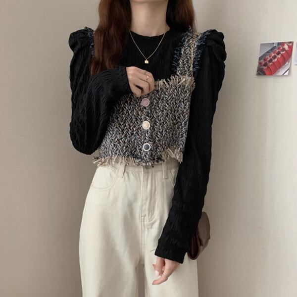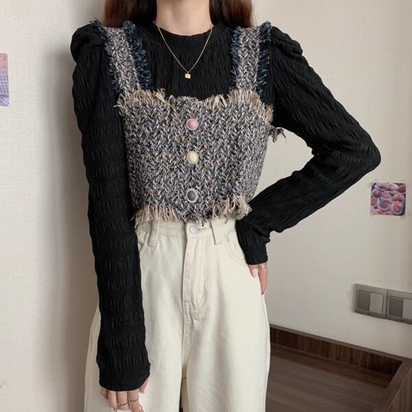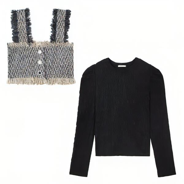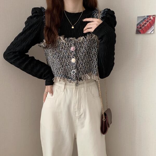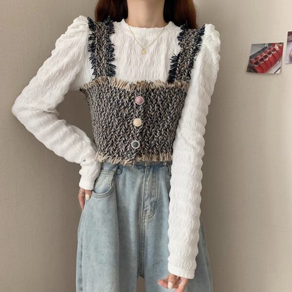 新しい季節の訪れを彩るファッションスーツ、タッセルのついたショートベスト&長袖トップのセットが登場しました。キャミソールのようなショートベストはタッセルがアクセント。一方、長袖のシャツはシックなデザイン。上品で洗練されたファッションスーツは、どんなシーンでもあなたの魅力を引き立てます。快適な着心地と高品質な素材で、一日中快適に過ごせること間違いありません。特別な日をさらに輝かせる、おしゃれなスタイルを手に入れましょう。