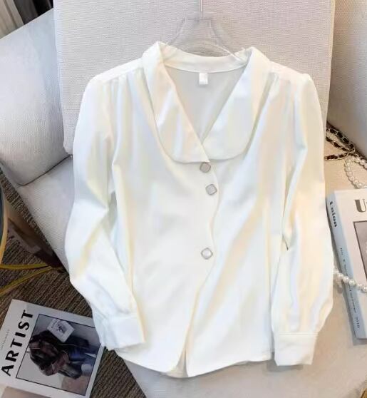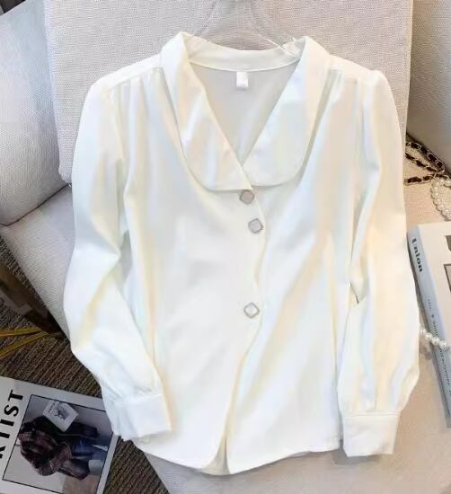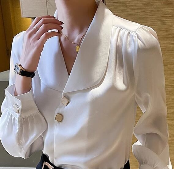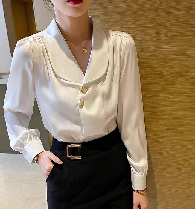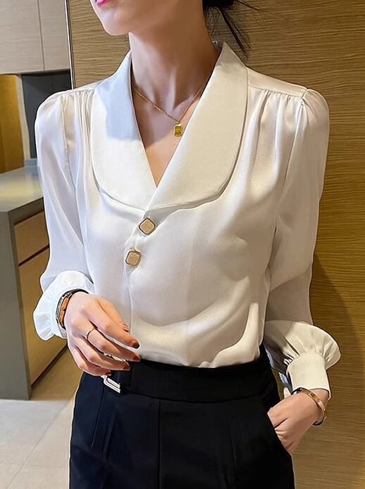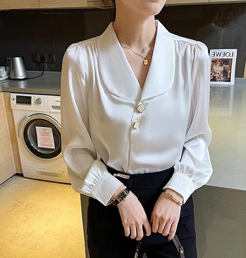 レディース シャツ ブラウス 長袖 襟付き かわいい 大人可愛い きれいめ シンプル カジュアル 上品 おしゃれ かっこいい こなれ感 フォーマル とろみ感 ラブリー キュート ナチュラル 知的 清潔感 無地 春 オフィス ビジネス OL 通勤 韓国 オルチャン コーデ S M L XL 白 ホワイト