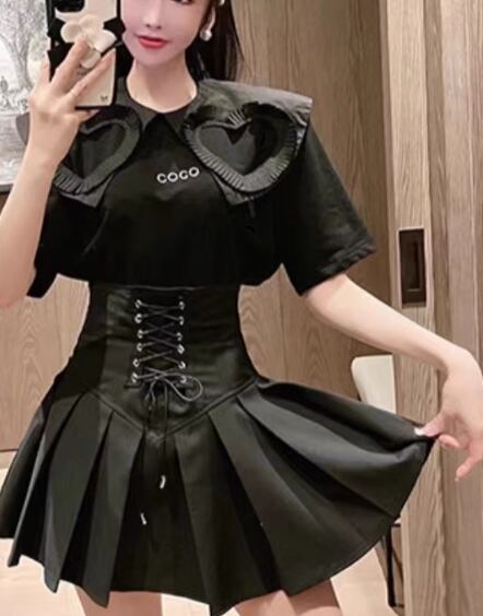 レディース スカート ミニ ショート タイト スリム 細身 プリーツ タック タックプリーツ 編み上げ レースアップ 異国風 かわいい 大人可愛い きれいめ 上品 おしゃれ ラブリー キュート ゴシック ロリータ 派手 セレブリティ セクシー ポップ ファンシー メルヘン 無地 夏 パーティー イベント 韓国 オルチャン コーデ モテ 清楚 トレンド S M L