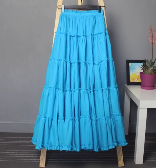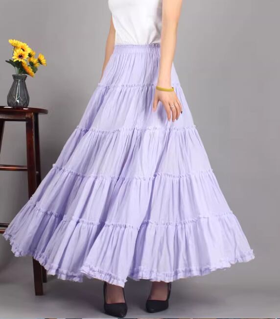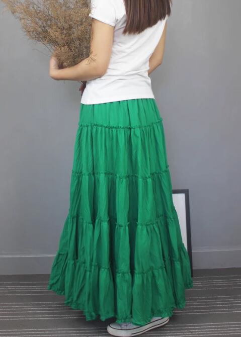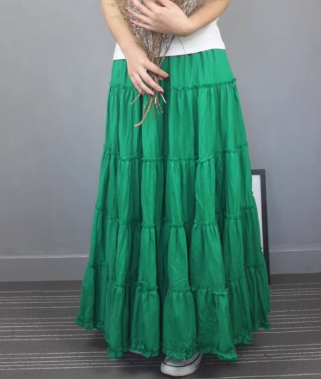 レディース スカート フレア ティアード ロング マキシ ウエストゴム かわいい 大人可愛い きれいめ シンプル カジュアル ラフ ガーリー ルーズ ラブリー キュート 無地 夏 デート お出かけ 公園 女子会 休日 バカンス 韓国 オルチャン コーデ 楽ちん M L ホワイト ブラック 紫 ブルー 緑