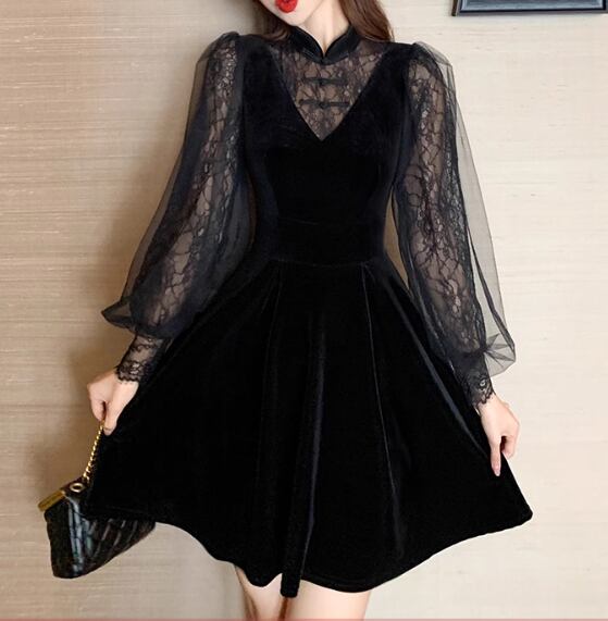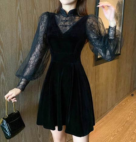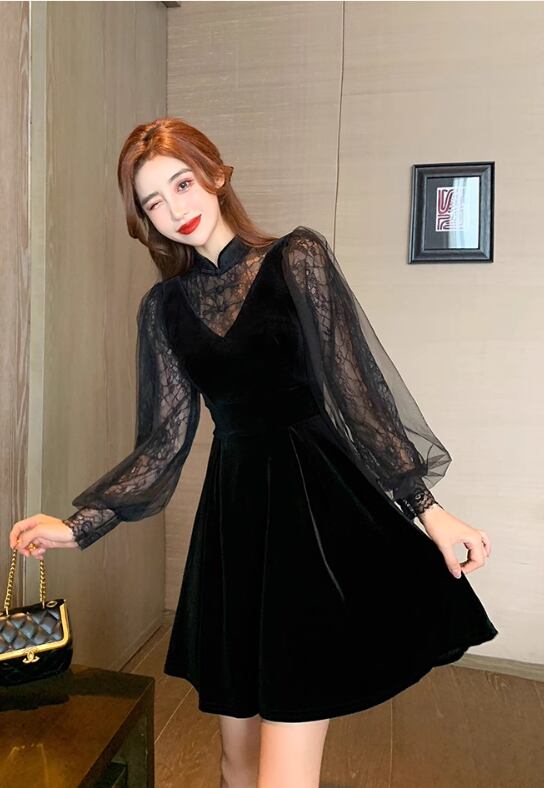 レディース ワンピース ドレス パーティードレス ミニ ショート 膝上 長袖 ボリューム袖 Aライン 刺繍 チュール シフォン 透け感 シースルー 切り替えデザイン 肌見せ かわいい 大人可愛い きれいめ 上品 おしゃれ こなれ感 ラフ 知的 清潔感 爽やか セクシー ポップ ファンシー 無地 オールシーズン 結婚式 二次会 披露宴 ロングシーズン シーズンレス パーティー イベント モテ 清楚 S M L XL 2XL 黒 ブラック