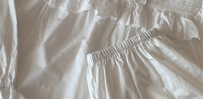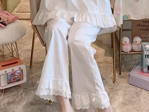 レース×フリル×リボン、ガーリーな要素がギュッと詰まった可愛らしい雰囲気のパジャマの上下セット。