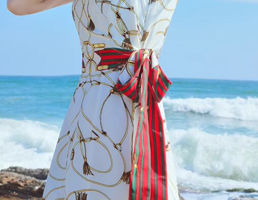 ウエストの赤いリボンがアクセントになっていておしゃれ!