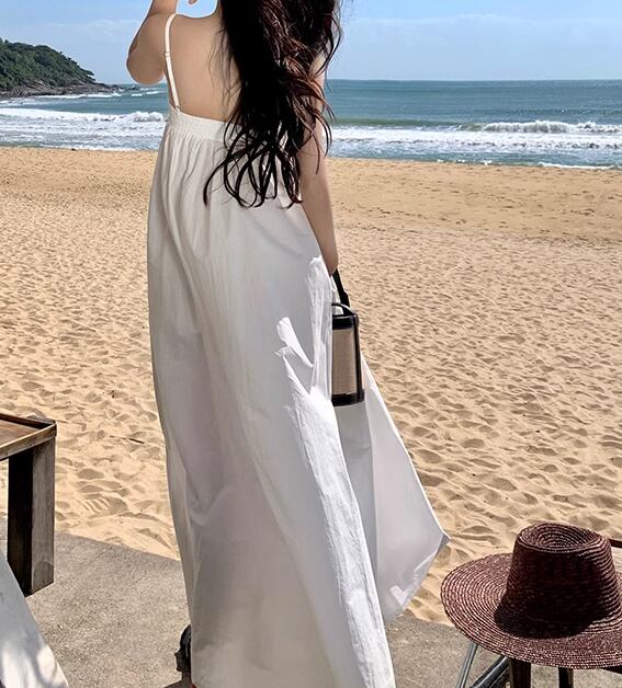 夏にぴったりの涼しげなデザインが魅力的なマキシ丈のキャミワンピース。