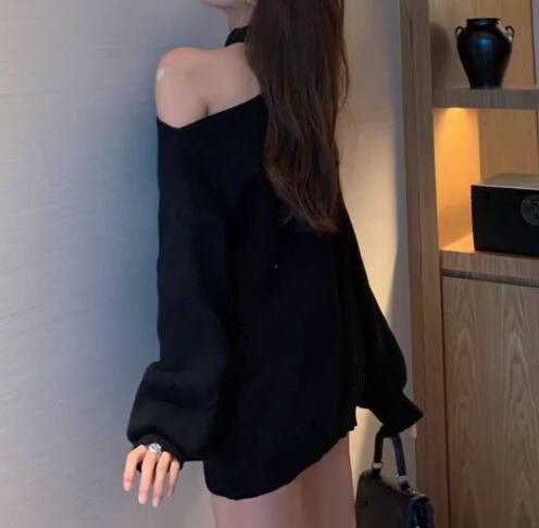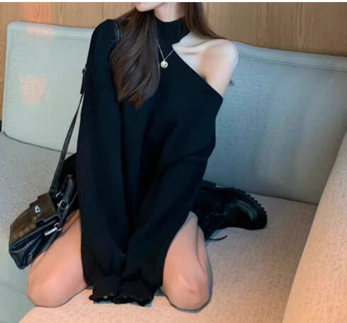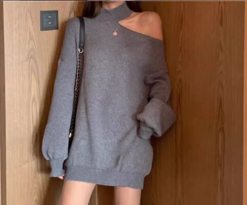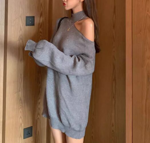 レディース ワンピース プルオーバー ニットワンピ ミニ ショート 長袖 ハイネック ホルターネック ワンショルダー 大人可愛い シンプル カジュアル おしゃれ こなれ感 個性的 存在感 抜け感 ラグジュアリー セクシー シック 高級感 スタイリッシュ 無地 秋 冬 10代 20代 学生 デート お出かけ 普段使い ゆったり ゆる フリーサイズ 大きめ オーバーサイズ ブラック グレー