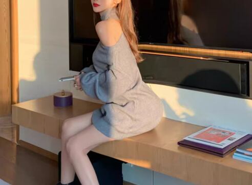 ショート丈×ワンショルデザインがセクシーで大人可愛い長袖のニットワンピース。
