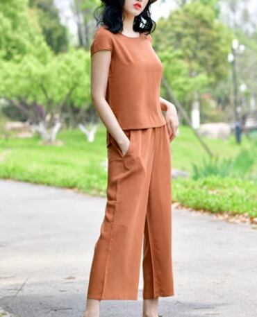 半袖のTシャツとクロップド丈のワイドパンツの2点セットです。