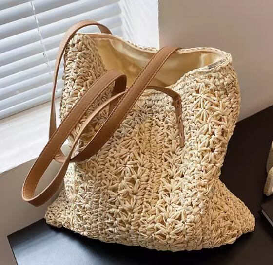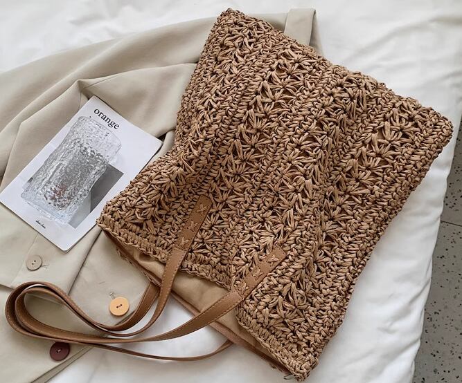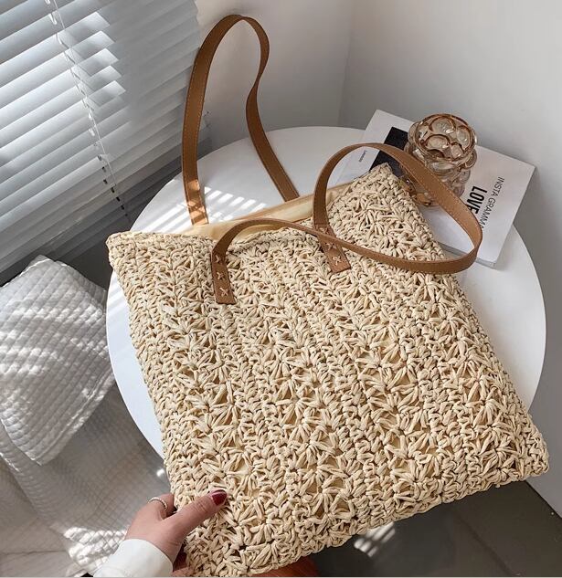 バッグ カバン レディース ショルダー トート 肩がけ シッピングバッグ 大容量 スクエア 四角 柔らかい ソフト 編み込み かぎ編み 藁 わら かわいい 大人可愛い きれいめ シンプル カジュアル 上品 お洒落 レトロ ラフ キュート 存在感 クラシック シック 高級感 デート お出かけ 普段使い 韓国 夏 大きめ 大きい ラージサイズ カーキ オフホワイト