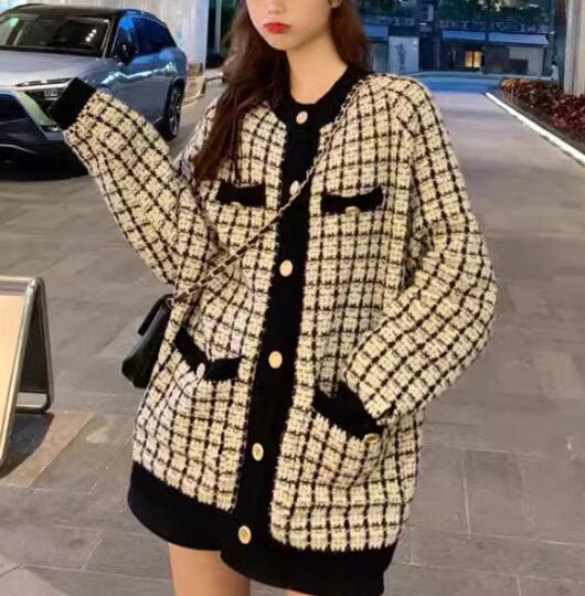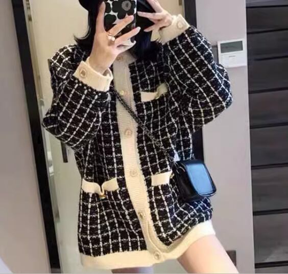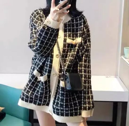 レディース トップス ニット セーター カーディガン ミドル丈 長袖 ラウンドネック ノーカラー ポケット 前開き ボタン 厚手 かわいい 大人可愛い きれいめ カジュアル 上品 おしゃれ レトロ こなれ感 ボーイッシュ ガーリー ルーズ クール エレガント 存在感 キュート シック 高級感 チェック 秋 デート お出かけ 体型カバー 普段使い 着回し ゆったり フリーサイズ ホワイト ブラック ピンク グリーン