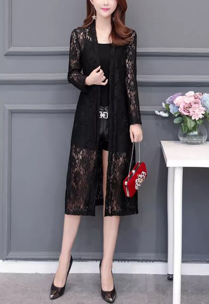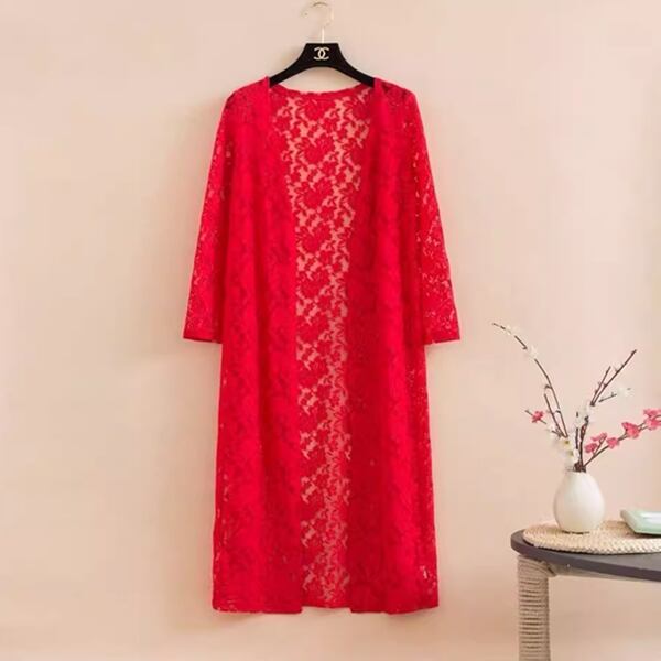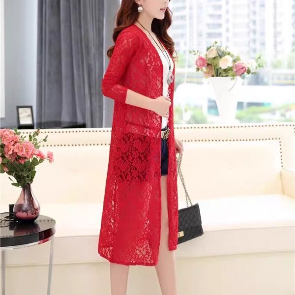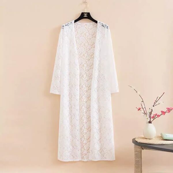 4カラー メッシュカーディガン レディース トップス シャツ カーディガン コート アウター 羽織 ショール 膝下 ロング 丈長 7分袖 ラウンドネック 襟なし ノーカラー 細身 ストレート レース 前開き レースアップ 透け感 薄手 ナイロン かわいい 大人可愛い 上品 おしゃれ ラフ エレガント 涼しげ 花柄 春 夏 秋 10代 20代 30代 通勤 ショッピング カフェ 韓国 トレンド 日焼け防止 ゆったり