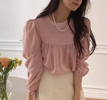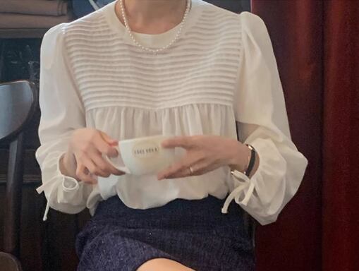 レディース トップス カットソー プルオーバー Tシャツ ミドル丈 長袖 7分袖 ボリューム袖 パフスリーブ ランタンスリーブ ラウンドネック ストレート フェミニン プリーツ シフォン リボン 切り替えデザイン かわいい 大人可愛い きれいめ シンプル カジュアル 上品 おしゃれ ガーリー ルーズ 個性的 キュート ラグジュアリー シック 高級感 優しい 穏やか フェアリー 柔らかい 無地 春 デート お出かけ 韓国 普段使い 着回し 清楚 トレンド 流行 フリーサイズ ホワイト ピンク