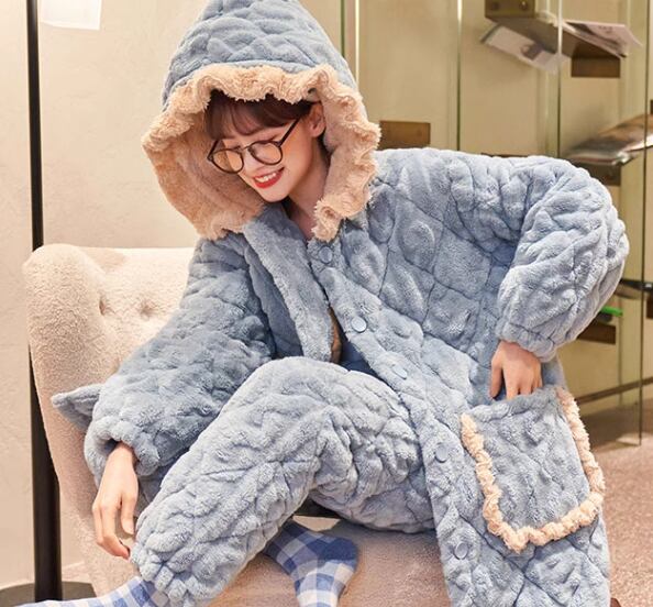 二点セット 上下セット ツーピース レディース パジャマ フルレングス 長袖 フリル もこもこ ふわふわ ポケット 前開き ウエストゴム ボタン フード 厚手 ベルベット かわいい カジュアル おしゃれ ラフ ガーリー ルーズ 個性的 存在感 ラブリー キュート ラグジュアリー リラックス シック 高級感 優しい 穏やか 柔らかい 無地 冬 10代 20代 学生 お泊まり 暖かい 防寒 普段使い M L XL ネイビー ライトブルー