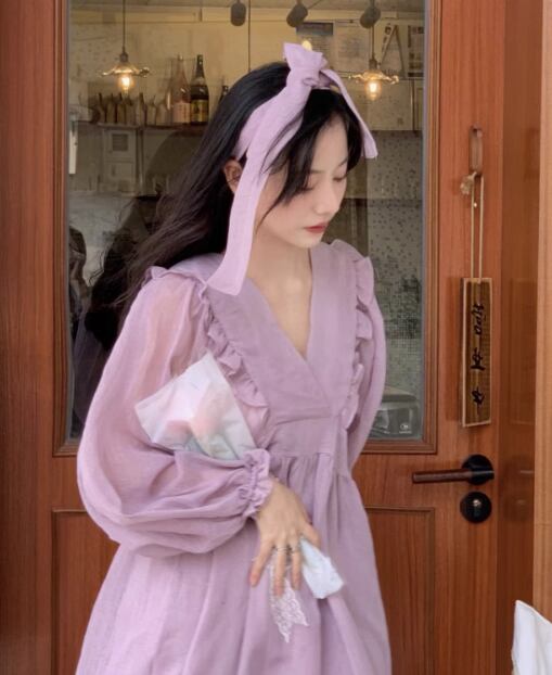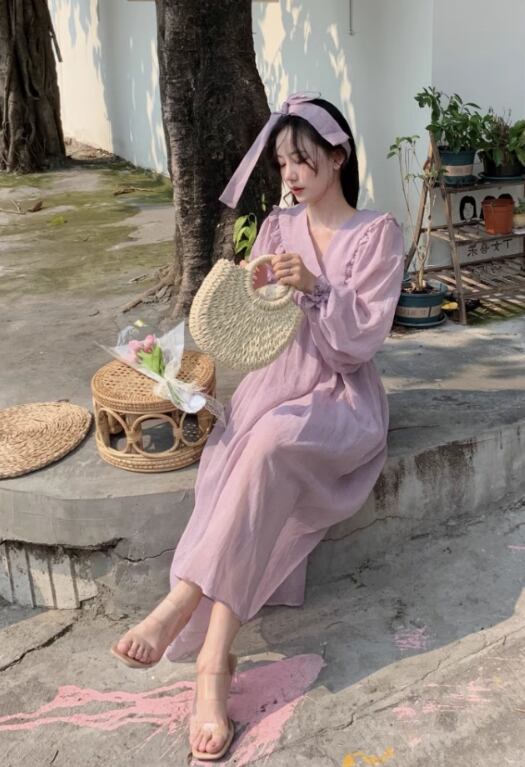 フェミニンで上品な印象を与えるレディースワンピース。Vネックとボリューム袖が特徴で、女性らしいシルエットを演出します。軽やかな素材とフレアの広がりが、動くたびに揺れる可愛らしさを演出。透け感と薄手の仕上がりで、夏の暑い日でも快適に着られます。
