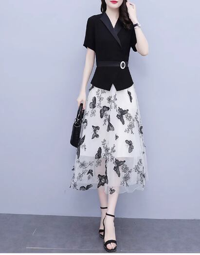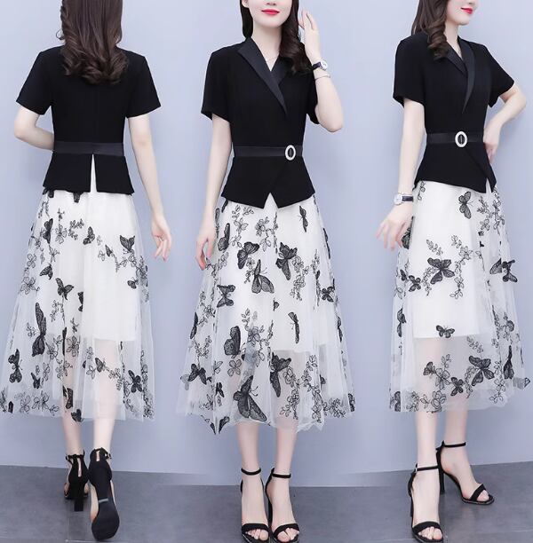 二点セット 上下セット レディース スカート トップス ジャケット シャツワンピ 半袖 5分袖 Vネック 襟付き ベルト ウエストマーク かわいい 大人可愛い 上品 おしゃれ こなれ感 ラフ エレガント フォーマル とろみ感 ラブリー キュート 高級感 オフィスカジュアル 無地 夏 秋 オフィス ビジネス OL 通勤 デート お出かけ 韓国 オルチャン コーデ 体型カバー 黒 ブラック