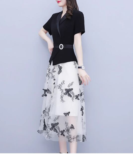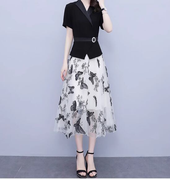 華やかで可愛らしい二点セットが登場しました!エレガントな刺繍が施されたフレアスカートと、上品な印象を与えるVネックのトップスがセットになっております。シルバーベルトのウエストマークで、スタイルアップ効果も抜群!ラブリーな雰囲気からエレガントなフォーマルまで、幅広いシーンで活躍してくれること間違いなしです。色展開 ブラック