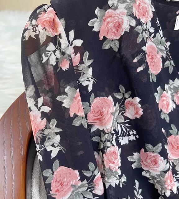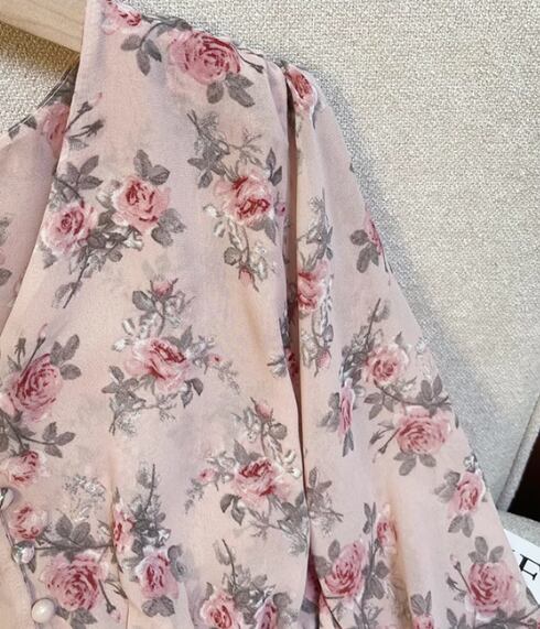 鮮やかな花柄が女性らしさを引き立てるシアー素材のブラウス。ボリューム袖のドルマンスリーブがトレンド感を演出し、Vネックのカッティングがデコルテを美しく見せます。日常のオフィスカジュアルから、デートやお出かけまで幅広く活躍する一枚。軽やかでありながらしっかりとした生地感で、着心地も快適です。