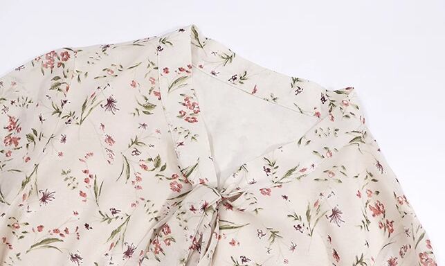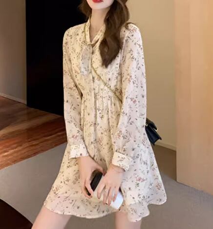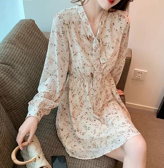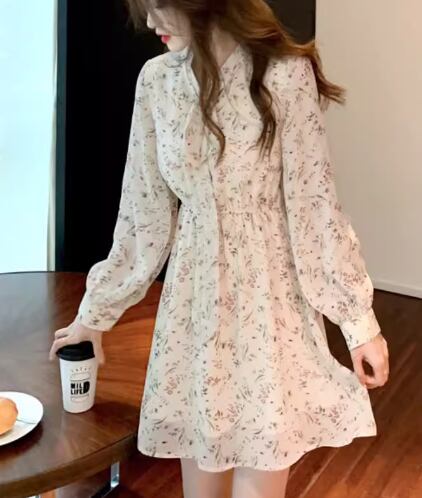 レディース ワンピース プルオーバー ミニ ショート 長袖 スタンドカラー りぼんタイ Aライン フェミニン シフォン リボン ウエストマーク かわいい 大人可愛い きれいめ カジュアル 上品 おしゃれ ガーリー エレガント ラブリー キュート ラグジュアリー セクシー シック 高級感 優しい 穏やか 柔らかい 花柄 フラワー プリント 小花柄 秋 10代 20代 学生 デート お出かけ 普段使い 清楚 S M L ホワイト