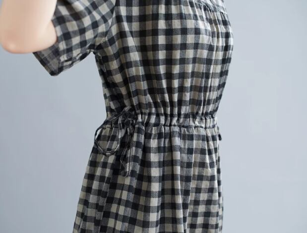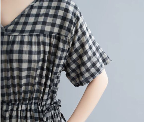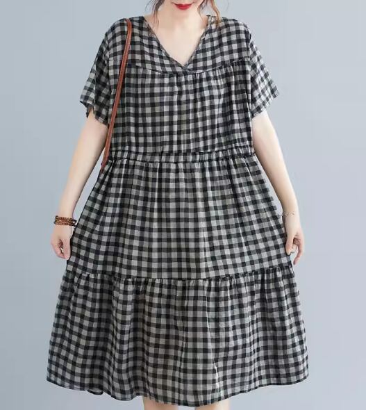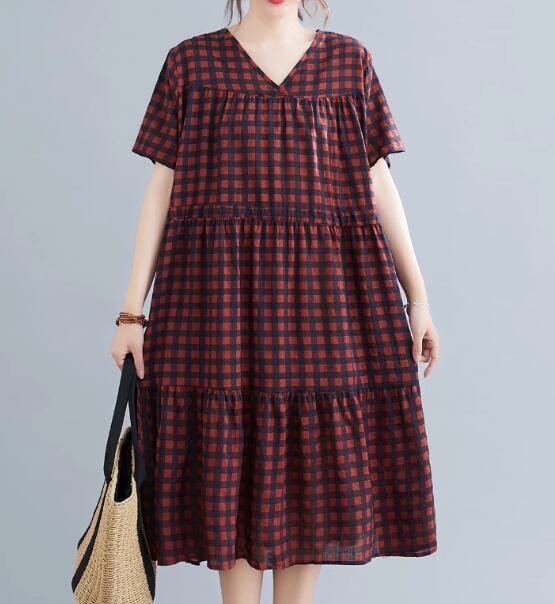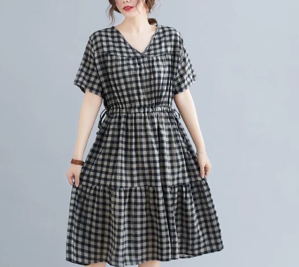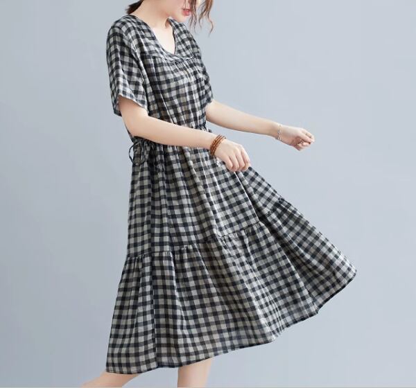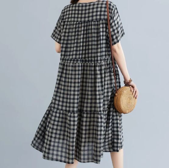 ゆったりシルエットとシックなチェック柄が大人可愛い半袖ワンピース。