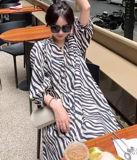 ゼブラ柄プリントが存在感抜群のシャツワンピース。
