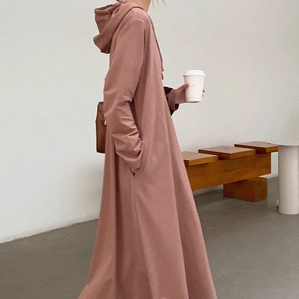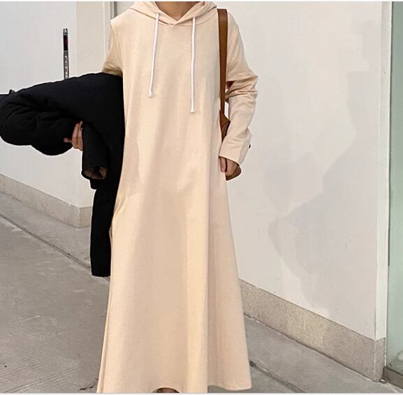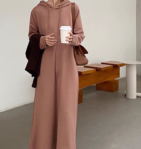スウェット風 レディース ワンピース プルオーバー スウェットワンピース ロング 長袖 Aライン フード コットン かわいい 大人可愛い きれいめ シンプル カジュアル 上品 おしゃれ レトロ ラフ ガーリー ルーズ クール キュート ナチュラル リラックス シック 高級感 無地 秋 デート お出かけ 韓国 楽ちん 体型カバー 普段使い ゆったり フリーサイズ ブラック ブラウン グレー オフホワイト ブルー