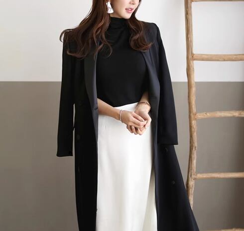クールなブラック×長い丈感がかっこいい長袖ジャケット。