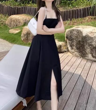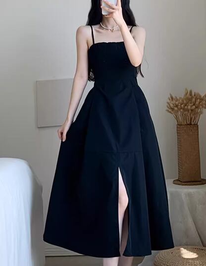 レディース ドレス パーティードレス ブラックドレス パーティー 結婚式 二次会 披露宴 ミモレ ロング 袖なし ノースリーブ スリム 細身 Aライン スリット ハイウエスト プルオーバー きれいめ シンプル カジュアル 大人可愛い おしゃれ かっこいい クール エレガント 抜け感 セクシー シック 高級感 女性らしい こなれ感 無地 イベント レストラン デート 食事会 会食 夏 S M L XL 小さめ ブラック