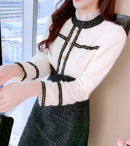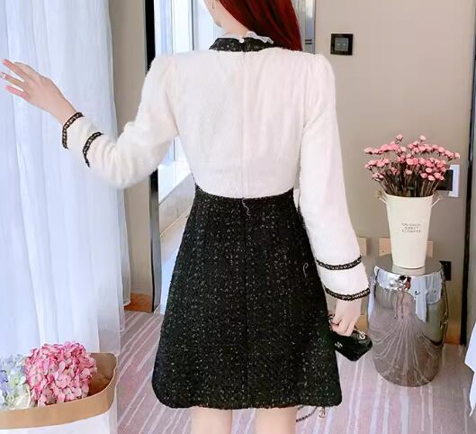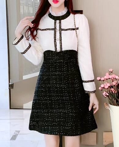 レディース ワンピース 膝丈 ミドル丈 長袖 ラウンドネック Aライン フリル ファスナー 切り替えデザイン ドッキング ベルベット かわいい 大人可愛い きれいめ 上品 おしゃれ レトロ ガーリー エレガント キュート ラグジュアリー クラシカル セレブリティ シック 高級感 優しい 穏やか 秋 冬 デート お出かけ 普段使い 清楚 M L XL ブラック