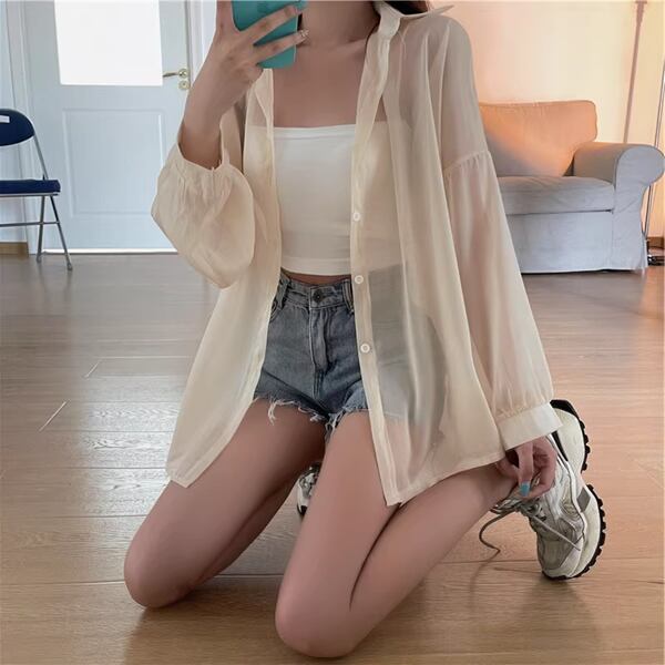 快適さとスタイルの両立・・・アイスシルクシャツ。夏の日差しを防ぎ、涼しく快適な着心地です。ミドル丈のゆったりとしたデザインは、体型を気にせず着こなせ、シースルーで通気性が高く肌に優しい感触。涼しい夏の風に心地よくなびくデザインが特徴です。ビーチやアウトドア、レジャー、ショッピングなど、様々なシーンでこのライトトップは涼しさを運んでくれます。
