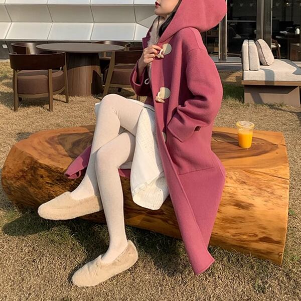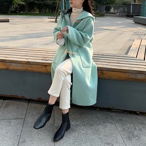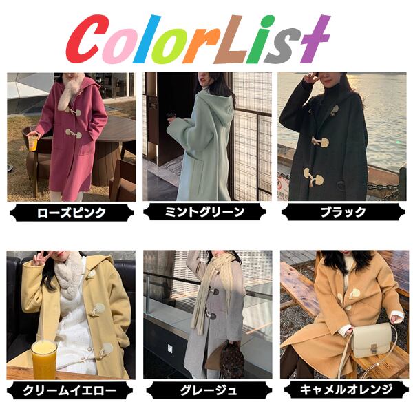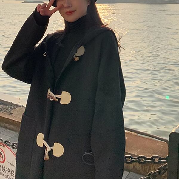 全6色レディース ホーンボタンコート/カシミヤフード付きウールコート/ショールマントコート/ヘボン風/ミドル丈/ダッフルコートトップス プルオーバー コート ミディアム ウール ミドル丈 長袖 フード ストレート ボタン ウール かわいい シンプル カジュアル 上品 おしゃれ 無地 秋 冬 10代 20代 通勤 通学 アウトドア キャンプ ガーデン 韓国 防寒 普段使い ゆったりウエスト
