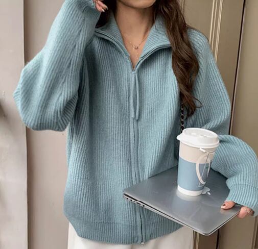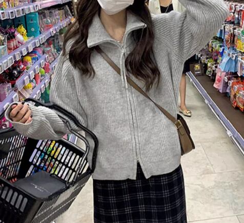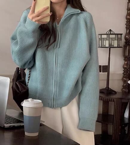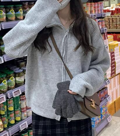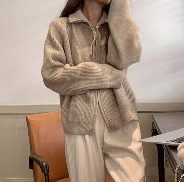 レディース トップス ニット カーディガン 前開き 長袖 ハイネック ファスナー リブ 前開き 2way リブニット Wジッパー かわいい 大人可愛い カジュアル おしゃれ ガーリー ルーズ 無地 春 秋 冬 お出かけ アウトドア 休日 楽ちん 暖かい 防寒 普段使い M L XL ゆったり ゆる グレー カーキ ピンク ブルー パープル