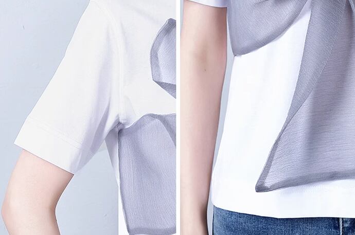 ホワイト×淡いパープルの大人可愛い2色使いがおしゃれな半袖Tシャツ。