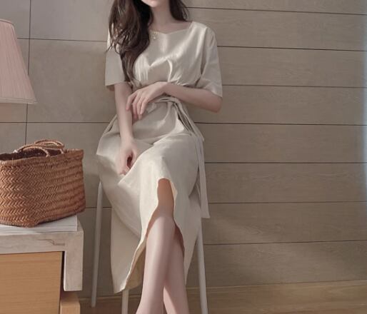 レディース ワンピース 膝下 ミモレ 半袖 スクエアネック Aライン シフォン ウエストマーク ウエストリボン ファスナー ハイウエスト かわいい 大人可愛い きれいめ シンプル カジュアル 上品 おしゃれ レトロ ガーリー エレガント キュート ナチュラル 清潔感 シック 高級感 優しい 穏やか 無地 夏 デート お出かけ 体型カバー 普段使い モテ 清楚 S M XL ゆったり ブルー アプリコット