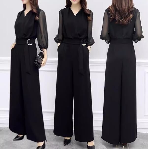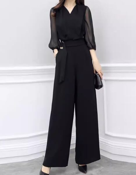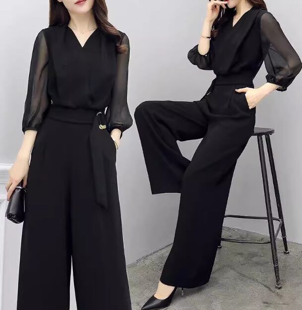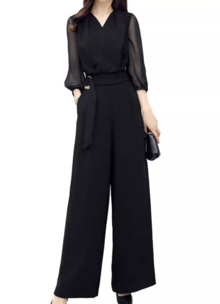レディース スーツ オールインワン ジャンプスーツ フルレングス 7分袖 Vネック ワイド ベルト ウエストマーク ポケット ハイウエスト 大人可愛い きれいめ シンプル カジュアル 上品 おしゃれ かっこいい こなれ感 クール モード系 エレガント ラグジュアリー 知的 ハンサム シック 高級感 オフィスカジュアル スタイリッシュ 無地 春 夏 オフィス ビジネス OL 通勤 デート お出かけ 体型カバー 美脚 脚長 普段使い M L XL ゆったり ブラック