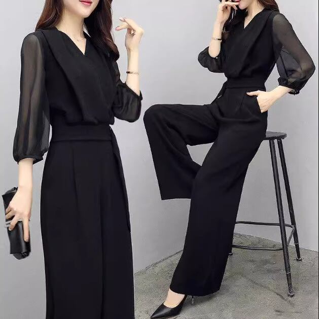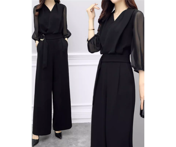 クールなブラック×洗練されたシンプルなデザインがかっこいい7分袖のジャンプスーツ。