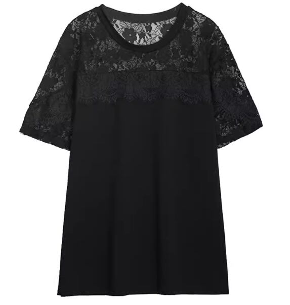レディース トップス カットソー プルオーバー Tシャツ ミドル丈 半袖 ラウンドネック フェミニン レース 切り替えデザイン ドッキング かわいい 大人可愛い きれいめ シンプル カジュアル 上品 おしゃれ ラフ ガーリー ルーズ エレガント キュート ラグジュアリー シック 高級感 華やか 優しい 穏やか フェアリー 涼しげ 夏 デート お出かけ 体型カバー 普段使い 着回し L XL 大きいサイズ ゆったり ホワイト ブラック