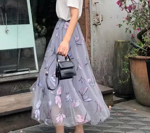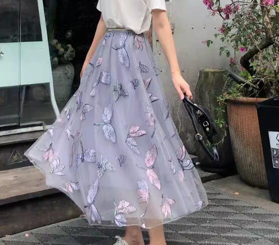 珍しいトンボ柄の刺繍が魅力的なチュールスカート。