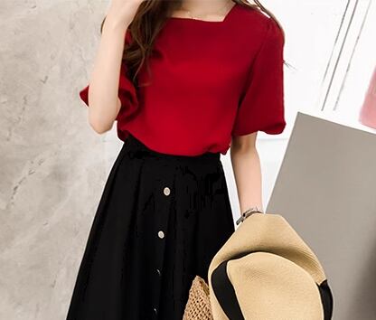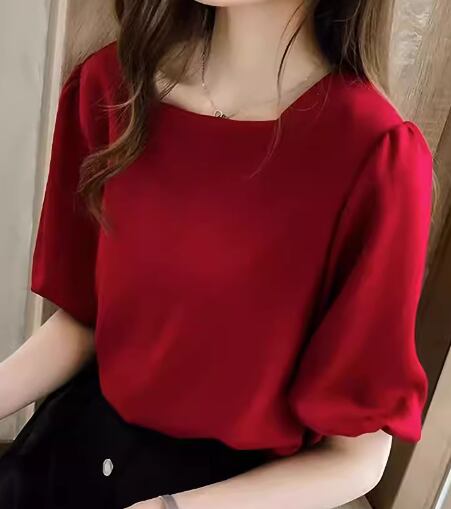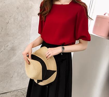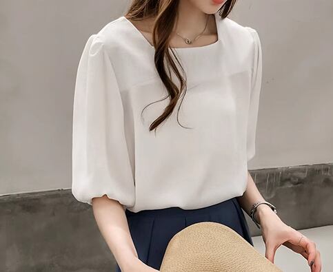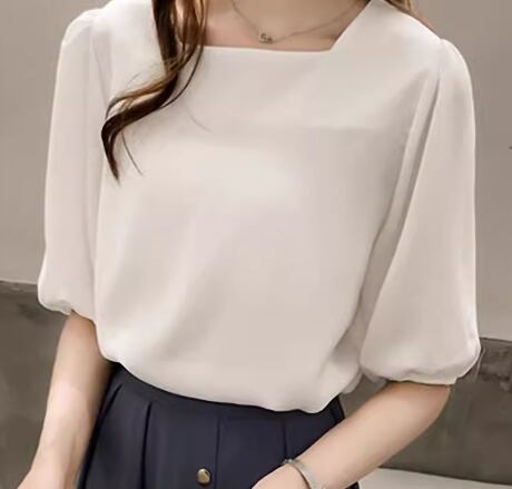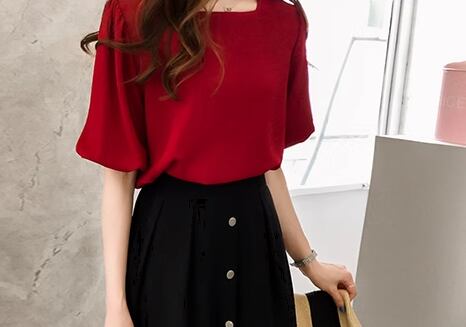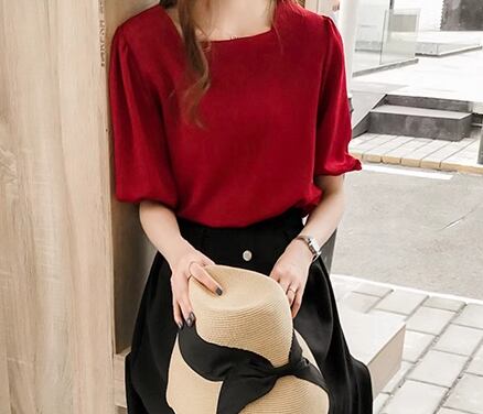 レディース トップス カットソー プルオーバー Tシャツ ミドル丈 半袖 5分袖 ボリューム袖 ランタンスリーブ スクエアネック 薄手 大人可愛い シンプル カジュアル 上品 おしゃれ ラフ ナチュラル 清潔感 爽やか シック 優しい 穏やか 無地 夏 デート お出かけ 韓国 オルチャン 普段使い 着回し トレンド 流行 M L XL ホワイト レッド